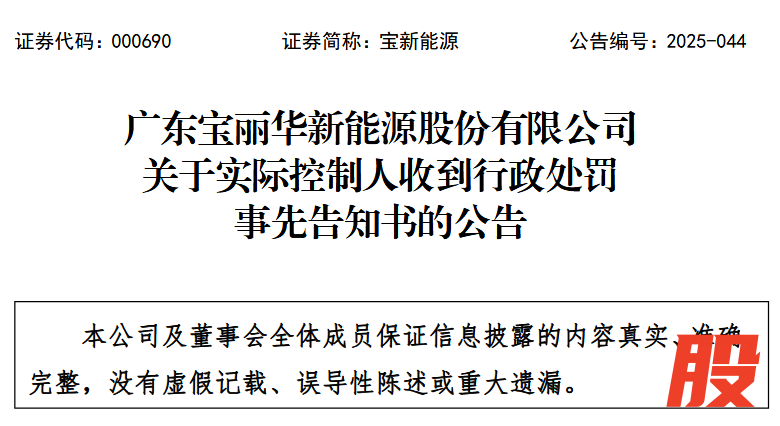 宝新能源对此表示,上述《告知书》的事项内容涉及公司实际控制人及其他违规人员,不涉及上市公司,不涉及上市公司现任董事、高级管理人员,不会影响公司正常的生产经营活动;公司生产经营情况一切正常。上述《告知书》认定的情况不触及《深圳证券交易所股票上市规则》第九章第五节规定的重大违法强制退市情形,亦不触及其他风险警示情形。