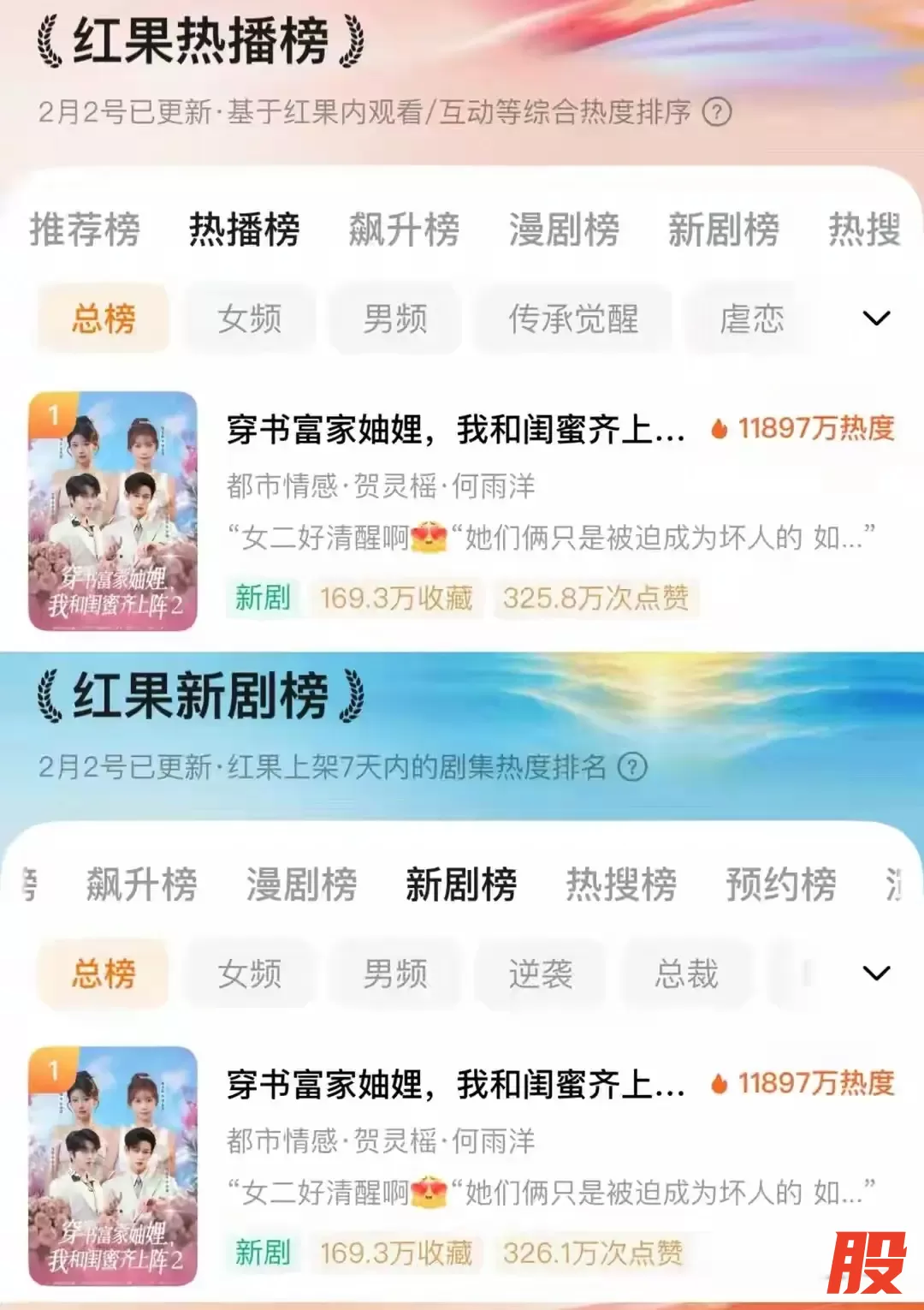 俩人合作的《穿书富家妯娌,我和闺蜜齐上阵2》一上线就热度狂飙,不仅播放量轻松破亿,还一举拿下红果热播榜、新剧榜、热搜榜三榜第一!演技颜值不输曾辉韩雨彤!