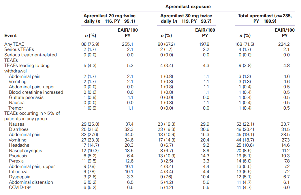 安全性方面,阿普米司特52周耐受性良好(如图3):